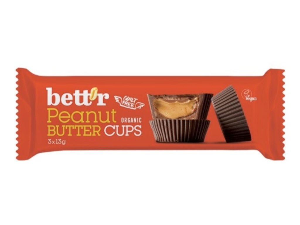 Bett'r Organic Almond Butter Cups, Čokoládové košíčky s arašidovým krémom BIO, 3 x 13 g