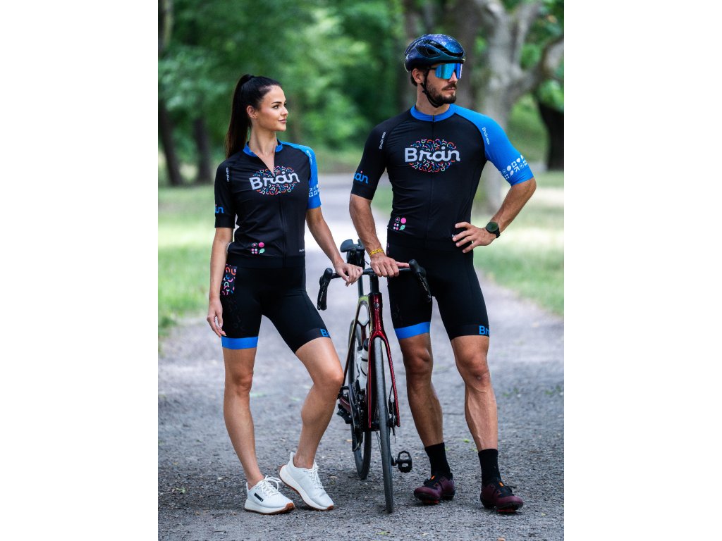 BRAIN unisex cyklistický set, dres a kraťasy, čierny Čierny cyklistický dres s kraťasmi