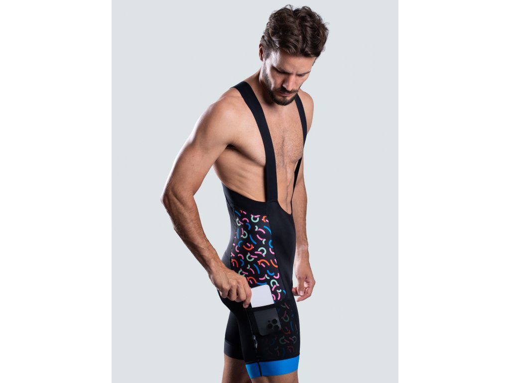 Dres je vyrobený z technického mikrovlákna (polyester/elastan), ktoré efektívne odvádza pot, rýchlo schne a zároveň umožňuje koži dýchať aj pri vysokej záťaži. Anatomický strih sa prispôsobí telu v pozícii na bicykli, silikónový lem v spodnej časti zamedzí vyhrňovaniu a trojkomorové zadné vrecko pojme všetko dôležité. Reflexné prvky zvyšujú bezpečnosť za zníženej viditeľnosti. Ideálne pre cestnú aj MTB cyklistiku.