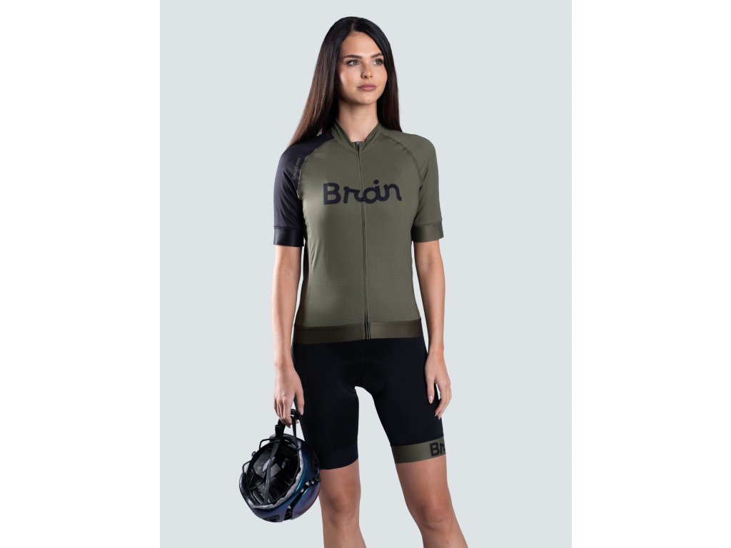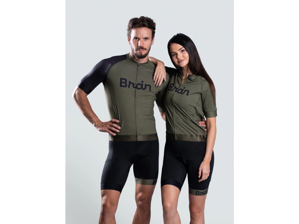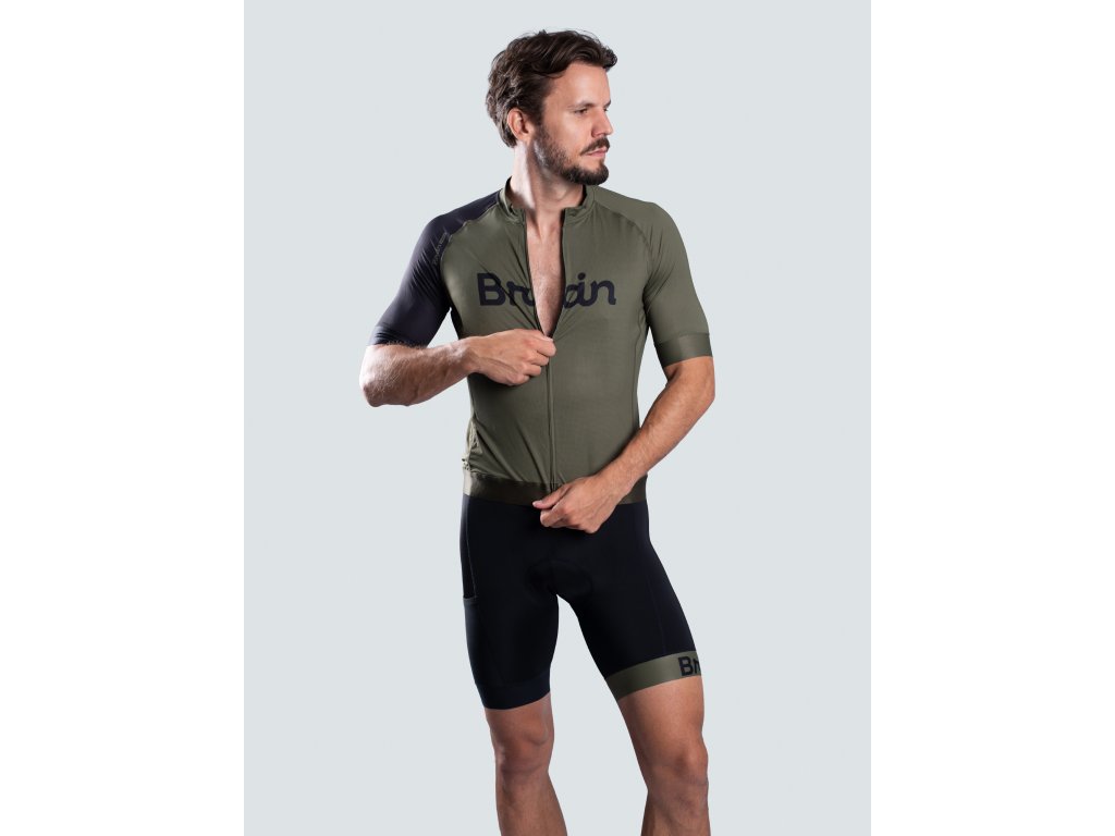 BRAIN unisex cyklistický set, dres a kraťasy, zelený Zelený cyklistický dres s kraťasmi
