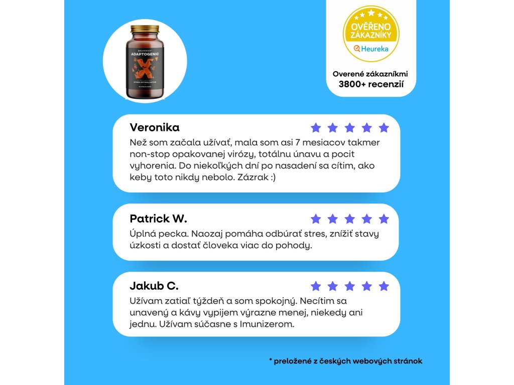 Cieľom tejto na našom trhu jedinečnej kombinácie je znižovať mieru únavy a vyčerpania (vitamín B12), udržať imunitný systém v rovnováhe (sladké drievko) a všeobecne psychické i fyzické zdravie (nepravý ženšen). Brainmax 1.5 oceníte predovšetkým, pokiaľ už máte pocity, že sa na Vás všetko valí a nič nestíhate. Stáva sa vám, že ráno nedokážete vstať z postele a neustále pretáčate budík a večer naopak máte energie, že by ste mohli rúbať lesy. Pokiaľ áno, tak je BrainMax Adaptogenic práve pre vás! Stáročiami preverené extrakty z bylín spojené v unikátnej kombinácii a obohatené o esenciálne vitamíny sú nástrojom, ktorý využijú nielen športovci, ale predovšetkým ťažko pracujúci ľudia, zahltení technokratickým smogom dnešnej doby.