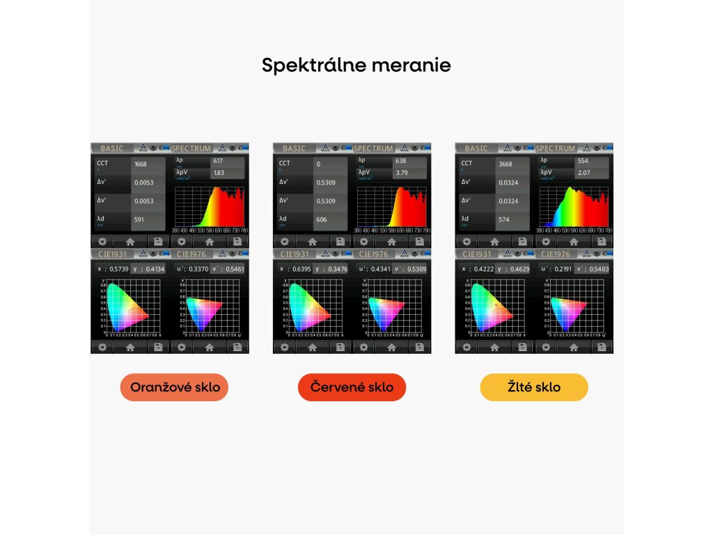 - Oranžové sklo: okuliare tak dokážu blokovať 100 % modrého svetla (zelené neblokuje). Blokujú spektrum o vlnovej dĺžke 480 do 617 nm.