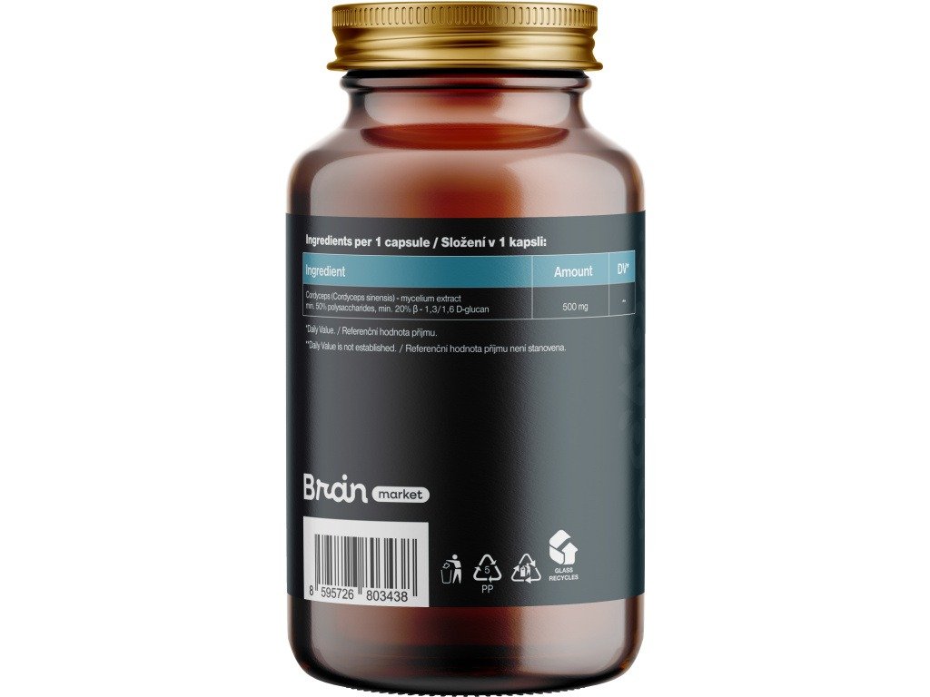 BrainMax Cordyceps extrakt, 50% koncentrácia polysacharidov a 20 % β-1,3/1,6 D-glukánov, 500 mg, 100 rastlinných kapsúl Extrakt z Cordycepsu sinensis s 50% polysacharidov a s garantovaným minimálnym obsahom 20% beta-1,3/1,6 D-glukánov, výživový doplnok