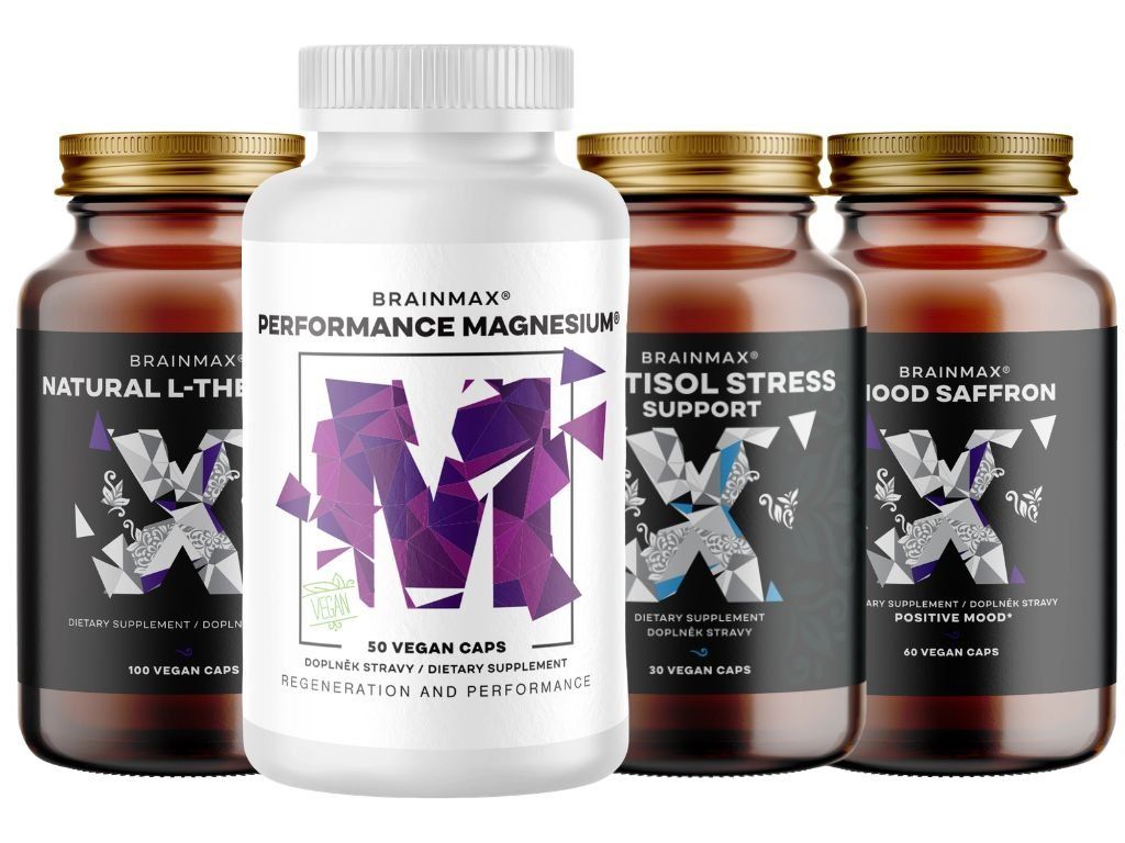 Štyri premyslené zložky, ktoré spolupracujú tam, kde to najviac potrebujete. Brainmax Mood Saffron prináša prémiový extrakt z šafranu - jednej z najcennejších byliniek sveta. Po jeho boku nastupuje Brainmax Cortisol Stress Support , ktorý dopĺňa tím o patentovaný extrakt z ashwagandhy KSM-66, rhodiolu a fosfatidylserín. Predposledným hráčom v balíčku je Brainmax L-theanin , ktorý krásne ostatné produkty krásne dopĺňa. Sadu uzatvára Performance Magnesium s najlepšie vstrebateľným horčíkom bisglycinát MagChel® a aktívnou formou vitamínu B6. Všetko, čo naša myseľ potrebuje, keď je toho na nás skrátka veľa.