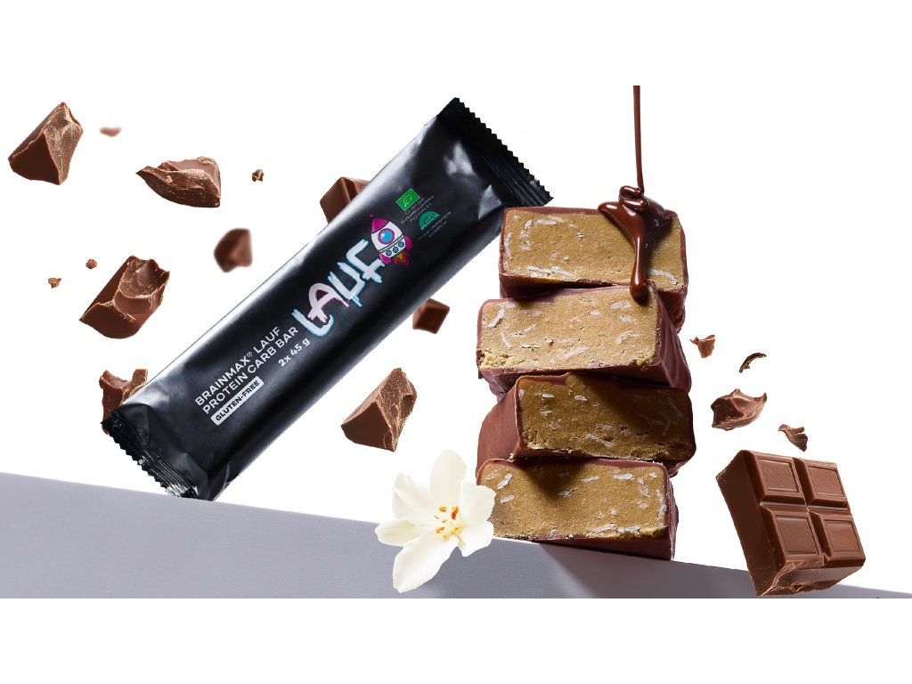 BrainMax Lauf Protein Carb Bar, s polevou, BIO, 2x45 g BIO proteínovo-sacharidová tyčinka s bezlepkovými ovsenými vločkami / *CZ-BIO-001 certifikát