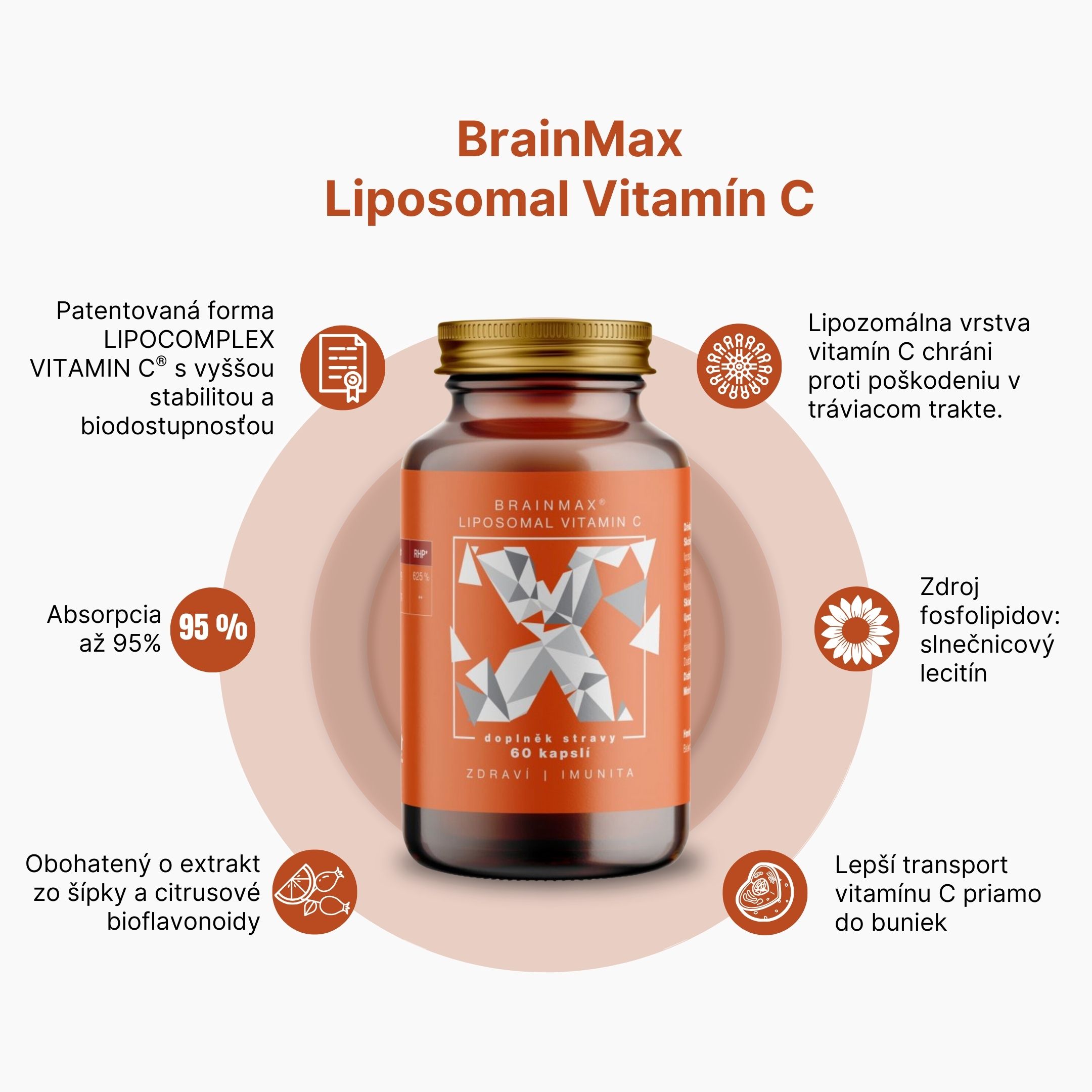 BrainMax Liposomal Vitamin C UPGRADE, Lipozomálny vitamín C, 500 mg, 60 rastlinných kapsúl Výživový doplnok