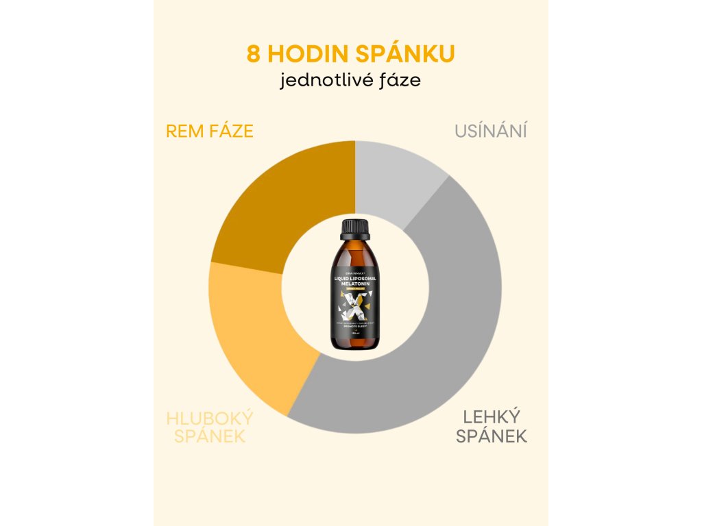 Spánok rozhodne nie je len pasívny odpočinok, je to najdôležitejší biologický proces regenerácie. Každá bunka v tele funguje podľa cirkadiánneho rytmu, vnútorných biologických hodín riadených suprachiasmatickým jadrom mozgu. Pokiaľ sú tieto rytmy narušené, napríklad svetlom v neskorých hodinách alebo nepravidelnosťou, znižuje sa kvalita spánku aj schopnosť tela efektívne regenerovať. BrainMax Liquid Liposomal Melatonín je navrhnutý tak, aby tieto rytmy rešpektoval a jemne podporoval. Od "signálu tmy", cez zaspávanie až po celú dobu spánku.