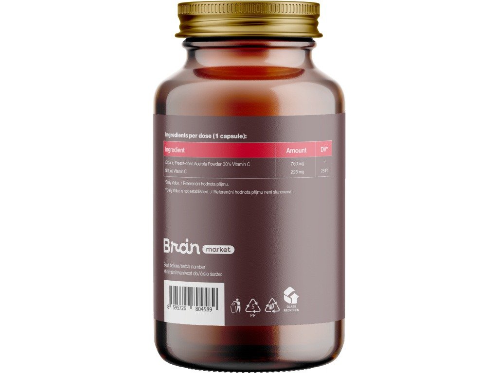 BrainMax Organic Vitamín C BIO Acerola, vitamín C z Aceroly, 60 rastlinných kapsúl Prírodný vitamín C z BIO Aceroly, 220 mg vitamínu C v jednej dávke, 281% DDD, 60 dávok, výživový doplnok, *CZ-BIO-001 certifikát