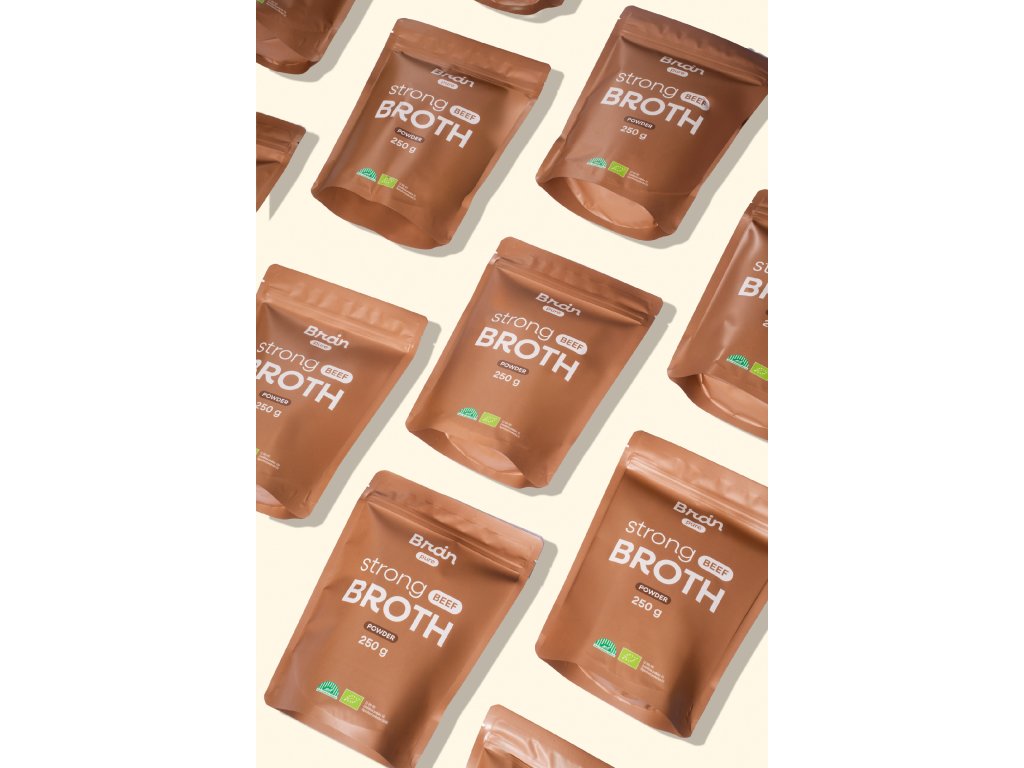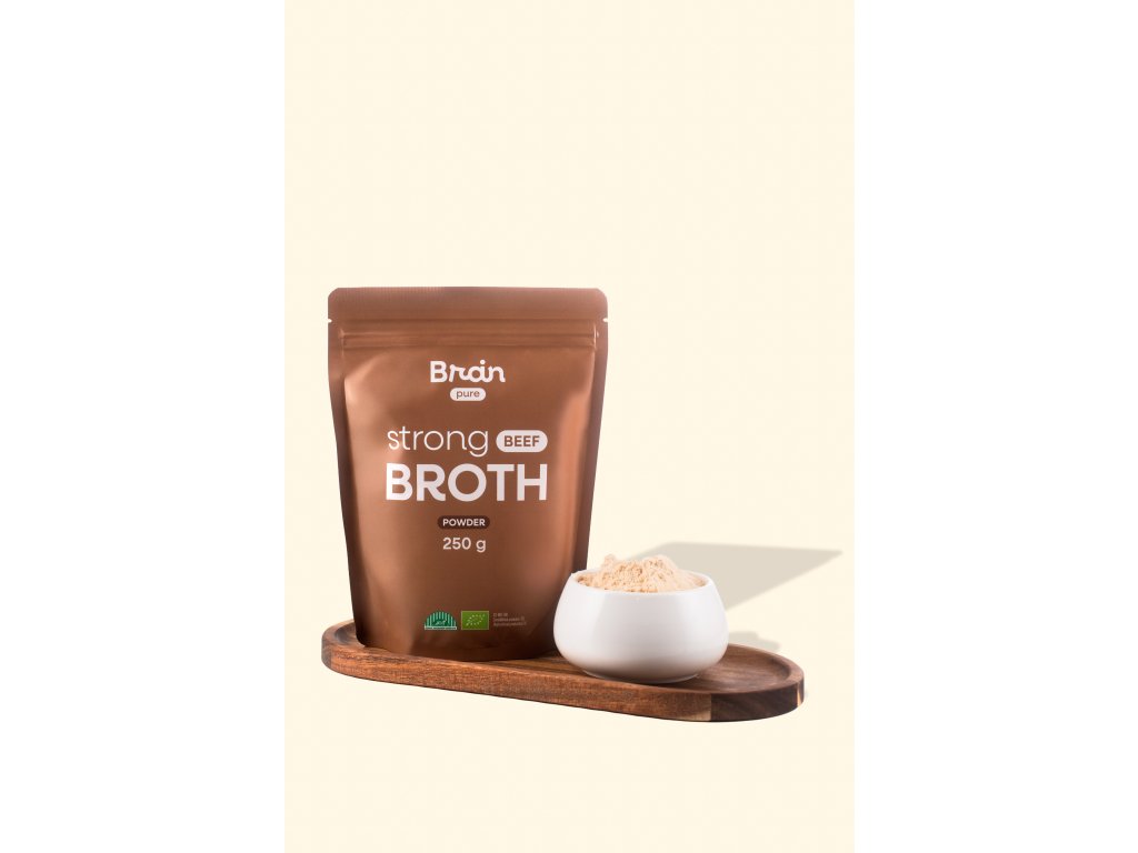 BrainPure Beef Collagen Broth, BIO, 250 g Kostný hovädzí vývar z grass-fed kráv plný kolagénu a aminokyselín / *CZ-BIO-001 certifikát