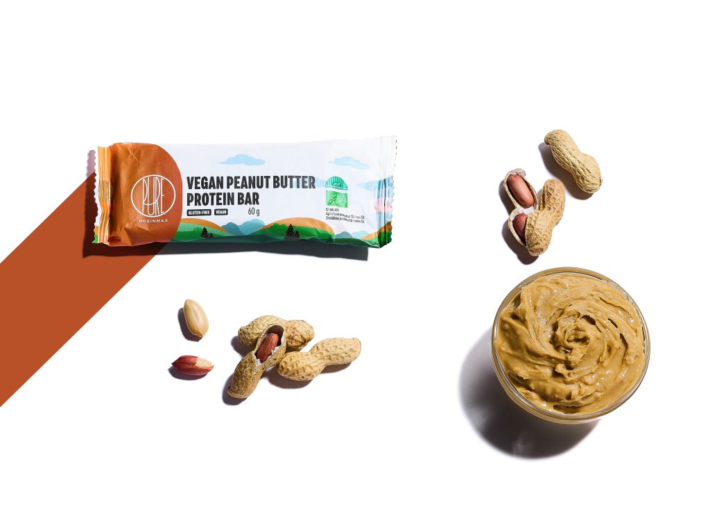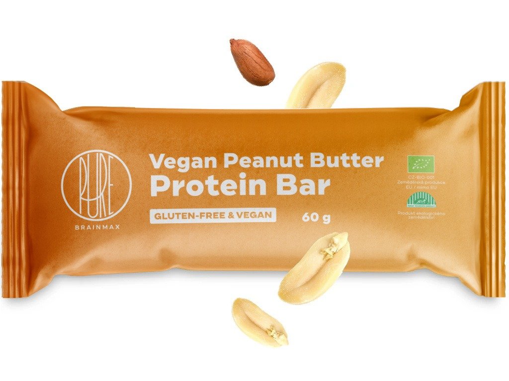 BrainMax Pure® Vegan Peanut Butter Protein Bar, BIO, 60 g Veganská proteínová tyčinka, Arašidové maslo / *CZ-BIO-001 certifikát