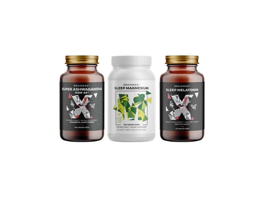 Popoludní - 1 kapsula BrainMax Ashwagandha. Ak máte problémy so štítnou žľazou, odporúčame sa najskôr opýtať svojho lekára, či je práve pre vás ashwagandha vhodná. K večeru - BrainMax Sleep Magnesium®, 320 mg, 100 kapsúl. 30 minút pred spaním - 2 kapsule BrainMax Sleep melatonín