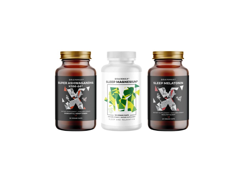 Popoludní - 1 kapsula BrainMax Ashwagandha. Ak máte problémy so štítnou žľazou, odporúčame sa najskôr opýtať svojho lekára, či je práve pre vás ashwagandha vhodná. K večeru - BrainMax Sleep Magnesium®, 320 mg, 50 kapsúl. 30 minút pred spaním - 2 kapsule BrainMax Sleep melatonín.