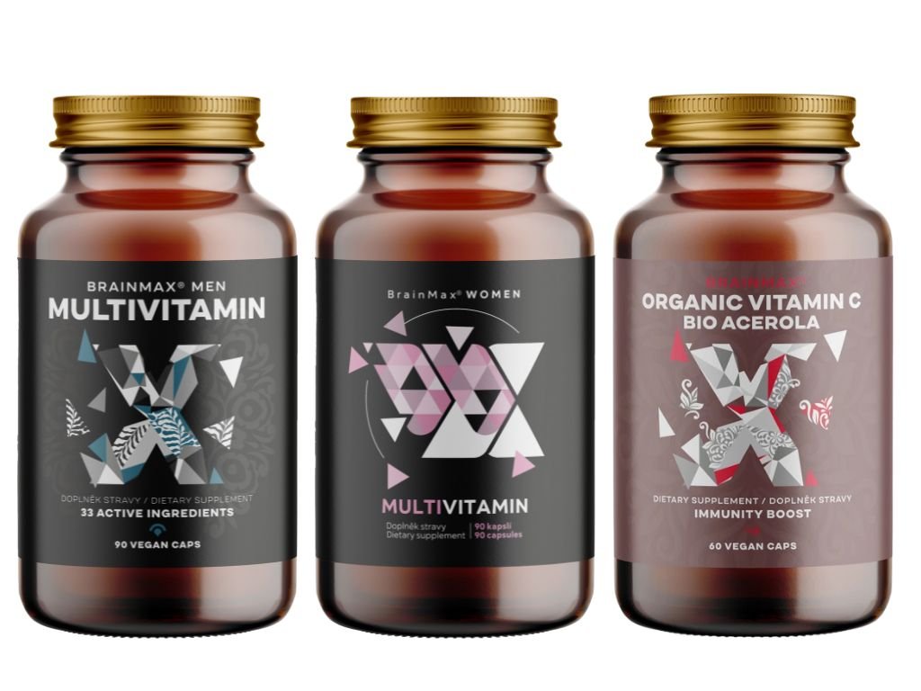 - BrainMax Men Multivitamín – komplex 33 vitamínov, minerálov a rastlinných zložiek v dávkovaní navrhnutom pre mužov. Obsahuje napríklad vitamíny skupiny B, zinok alebo selén, a je preto vhodný na každodenné doplnenie mikronutrientov, ktoré muži často potrebujú.