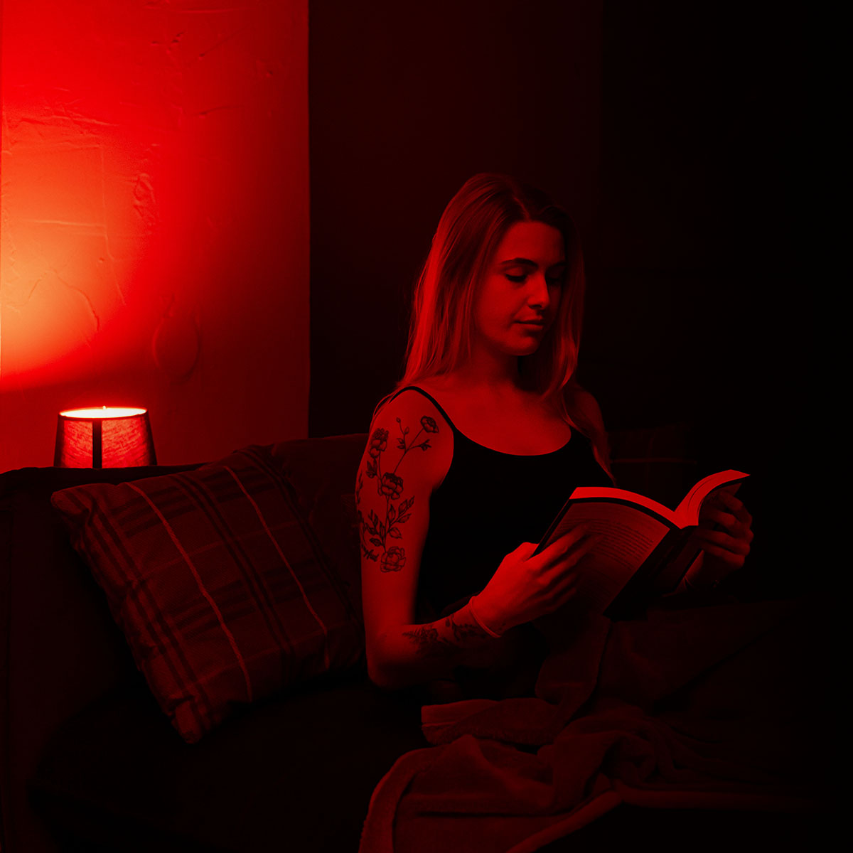 Minimálne 90 minút pred spánkom prepnete svetlo do červeného módu tým, že na ovládači zvolíte červené tlačidlo R. Červená farba totiž neobsahuje modrú ani zelenú zložku svetla, ktorá je obsiahnutá v dennom svetle, čím podporuje tvorbu spánkového hormónu melatonínu. S vyššou hladinou melatonínu dosiahnete hlbší a dlhší spánok. Melatonín je navyše najsilnejším antioxidantom, ktorý si naše telo dokáže vytvoriť. Jeho vyššie hladiny sa prejavia na zlepšení imunity, celkového zdravia a rannej energie.