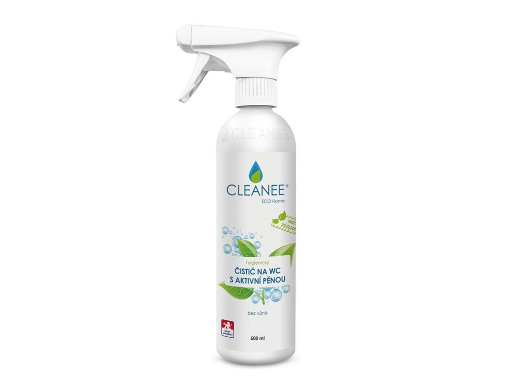 Cleanee ECO Home hygienický čistič WC s aktívnou penou bez vône vyčistí nielen toaletu, ale aj okolité povrchy ako dlažbu a iné príslušenstvo okolo WC. Navyše zanecháva príjemnú sviežu vôňu citróna. Všetky povrchy zanecháva dokonale čisté. Obsahuje prírodné saponíny a tenzidy, čím okrem čistiacich schopností dosahuje vysokú a dlhodobú účinnosť pri odstraňovaní bielkovinového zamorenia. Na ošetrených plochách vytvára mikrofilm chrániaci pred mikrobiálnou kontamináciou, zanecháva dlhodobú čistotu a pohlcuje nežiaduci zápach.