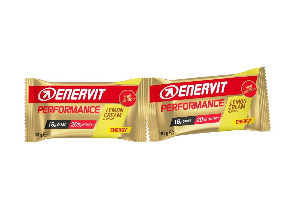 Energetická tyčinka Enervit Performance Bar je určená pre vytrvalostných športovcov, ktorí potrebujú efektívny a praktický zdroj energie počas dlhého tréningu či závodu. Vďaka rozdeleniu na dve časti (2 × 30 g) je možné si príjem energie rozložiť podľa potreby. Sacharidy tvoria 58 % obsahu a rýchlo dodajú potrebnú energiu, zatiaľ čo 19 % tvoria bielkoviny. Tyčinka je obohatená o vitamíny a minerálne látky dôležité pre výkon a obnovu. Neobsahuje žiadnu polevu - neroztečie sa ani v horúčave a nezanecháva ruky ulepené. Vhodná nielen pre cyklistov, bežcov, triatlonistov alebo bežkárov, ale aj ako výživná desiata počas dňa.