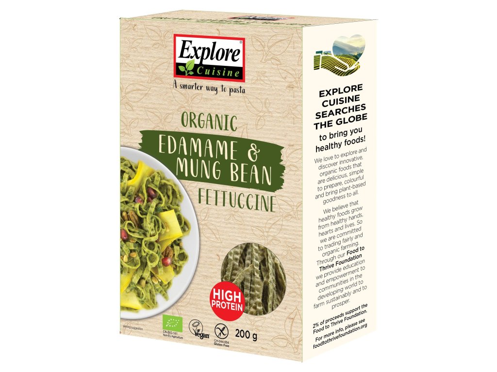 Fettuccine sú vyrobené iba z dvoch ingrediencií – bio edamame a bio mungo fazule. Táto nutrične bohatá cestovina obsahuje na jednu porciu 21 g bielkovín a 12 g vlákniny, čo z nej robí ideálnu voľbu pre aktívny životný štýl. Vďaka svojmu prirodzenému zloženiu je vhodná pre vegetariánov, celiakov i všetkých, ktorí hľadajú kvalitnú alternatívu klasických cestovín. Cestoviny sa ľahko pripravujú, vždy si zachovajú skvelú štruktúru a nikdy sa nerozvaria. Výborne sa hodia do teplých pokrmov aj šalátov a dodajú jedlu výnimočnú chuť i výživu.