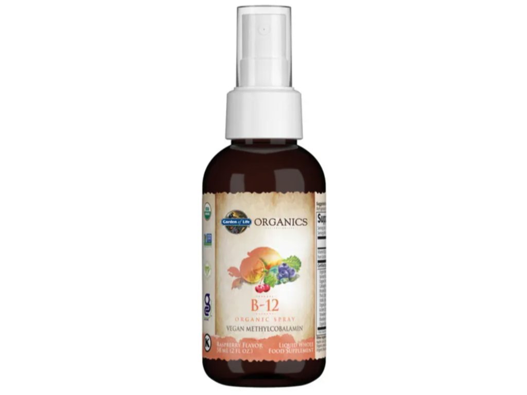 Garden of Life Organics B-12, sprej s vitamínom B12, malinová príchuť, BIO, 58 ml