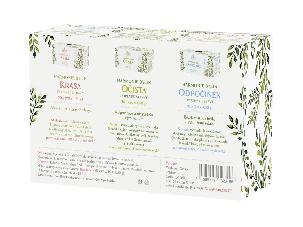 Grešík Dárkové trio Harmonie bylin Bylinná sada čajov pre ženy
