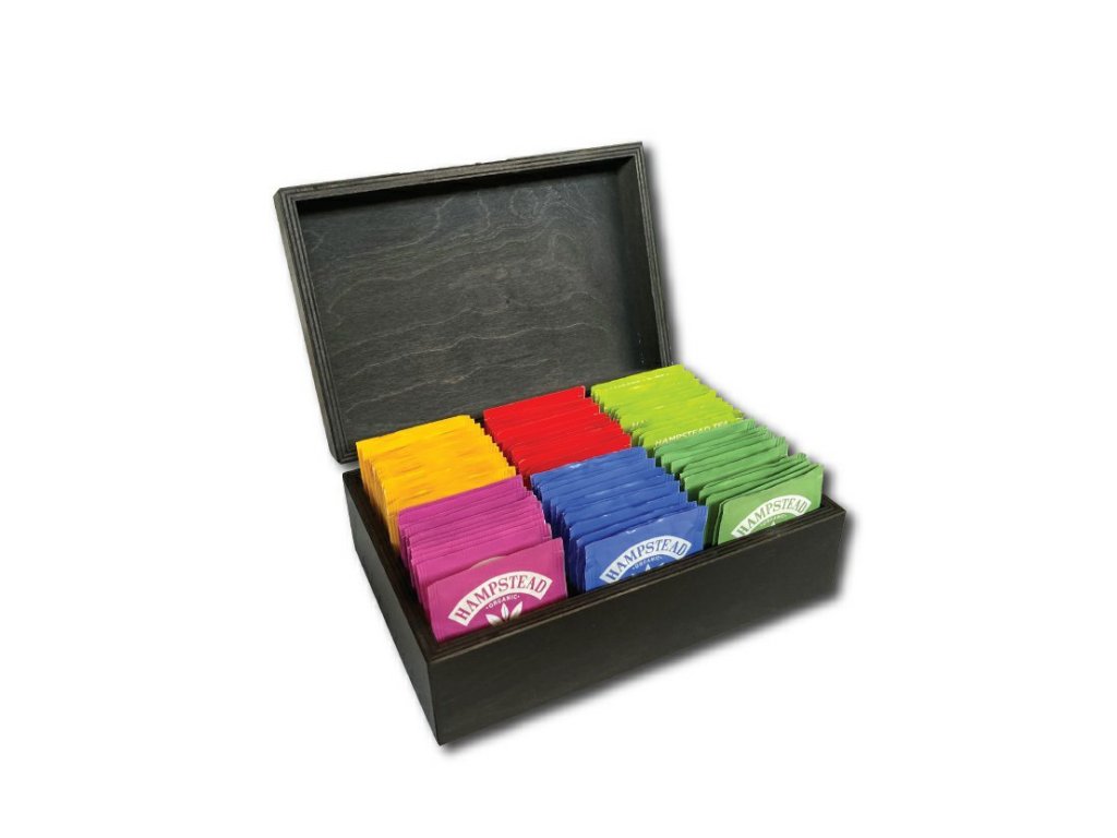 Hampstead Tea - Luxusná čierna drevená kazeta mix vreckových BIO čajov 78ks - 6 druhov *CZ-BIO-002 certifikát