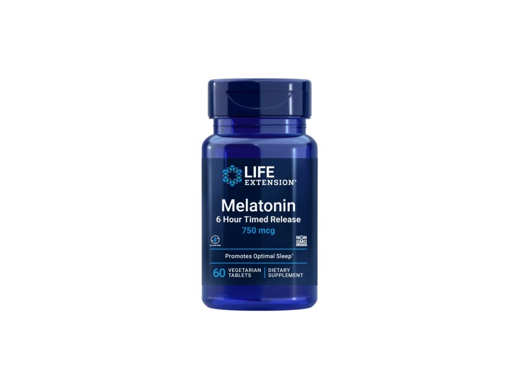 Life Extension Melatonin 6 Hour Timed Release, melatonin s časovým uvolňováním, 60 rostlinných tablet Výživový doplnok