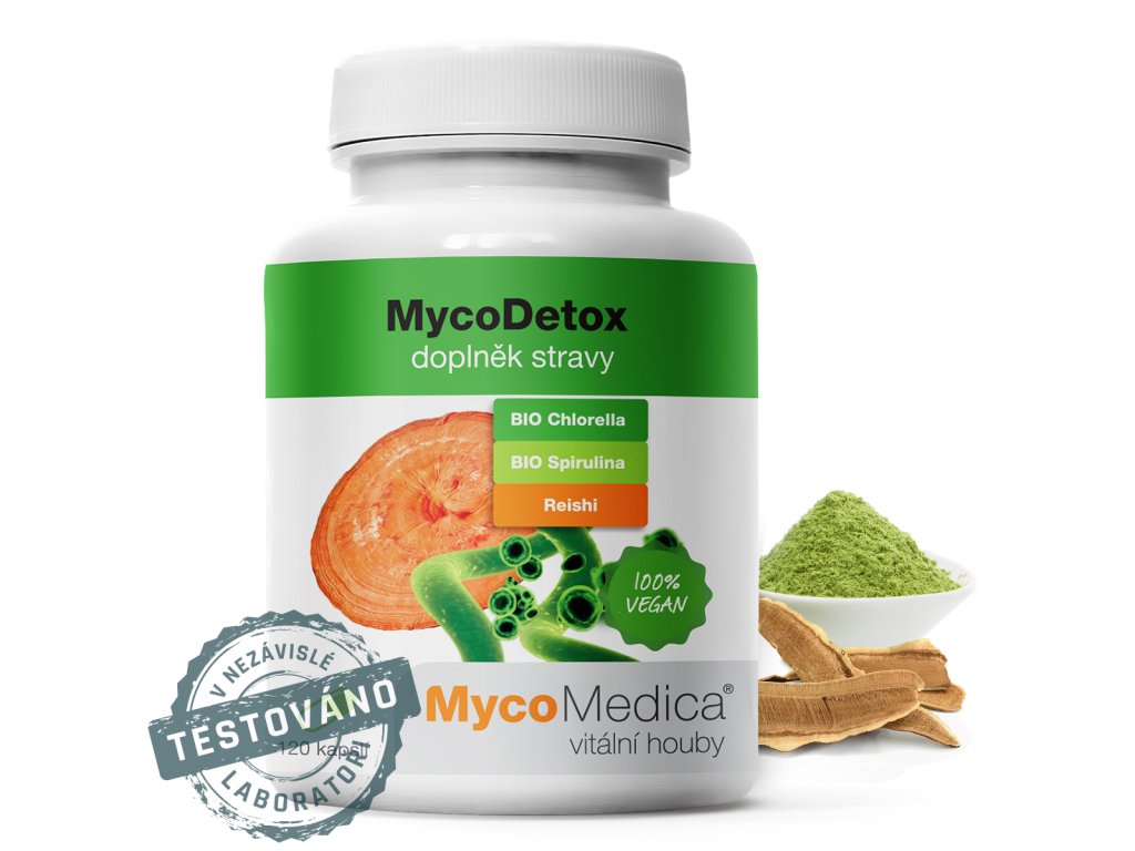 MycoDetox spája účinky huby Reishi a sladkovodných rias chlorelly a spiruliny na prirodzené prečistenie organizmu. Zmes vychádza z tradičnej čínskej medicíny, ale je podporená aj poznatkami modernej vedy. Riasy pomáhajú detoxikovať telo, podporujú normálnu funkciu pečene, trávenie a hladinu cukru v krvi. Reishi prispieva k imunitnej rovnováhe a vitalite. Acerola dodáva telu prírodný vitamín C, ktorý posilňuje celkový účinok celej zmesi.