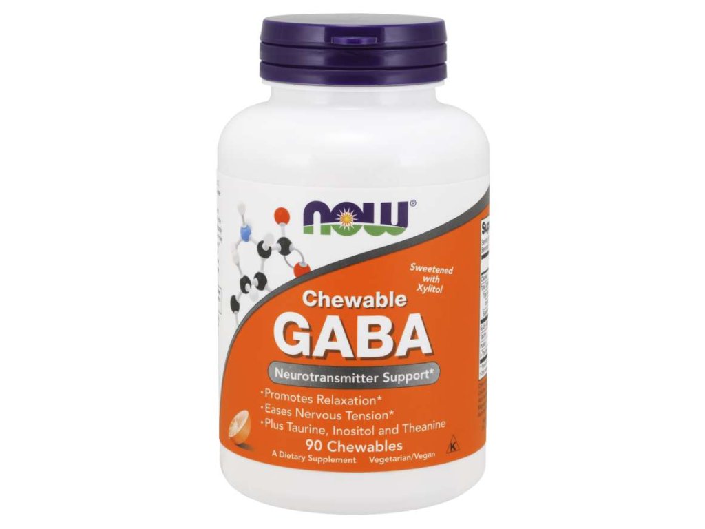NOW GABA (kyselina gama-aminomaslová) 500 mg + Taurin, Inositol a L-Theanin, 90 žuvacích kapsúl Výživový doplnok