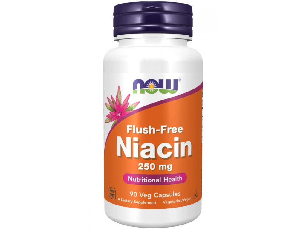 NOW Niacin, Bez vedľajšieho účinku sčervenania, 250 mg, 90 rastlinných kapsúl