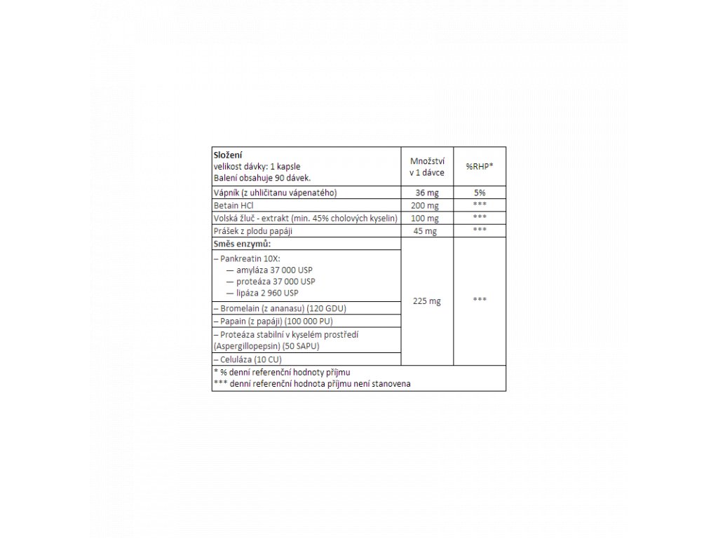 - Pankreatín 10X: - amyláza 37 000 USP - proteáza 37 000 USP - lipáza 2 960 USP | ||