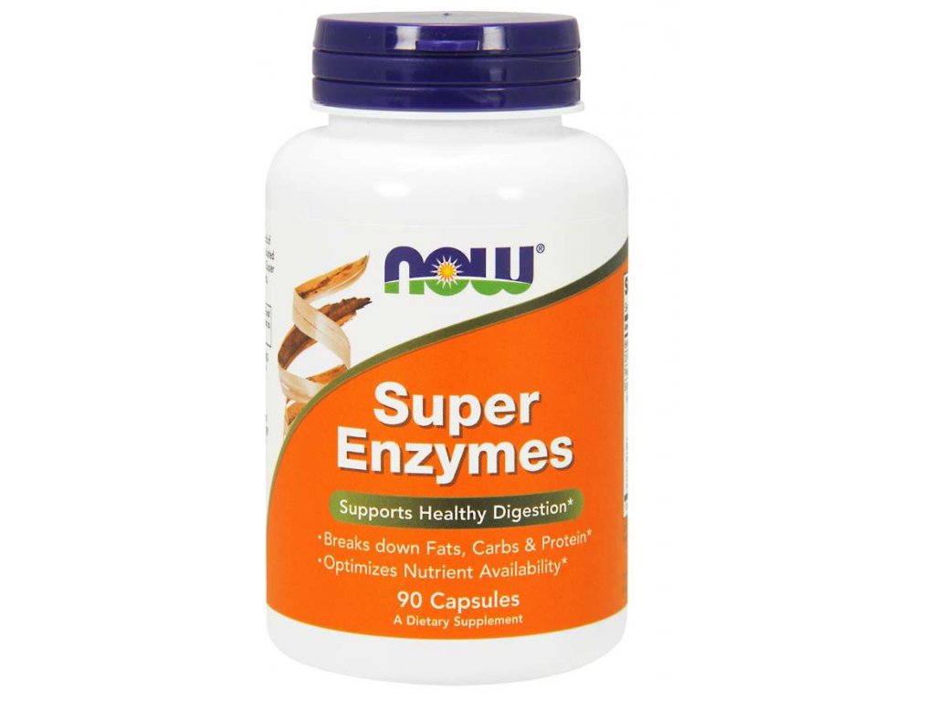 NOW® Super Enzymes je ucelená zmes enzýmov a ďalších látok, ktoré sa zúčastňujú prirodzeného procesu trávenia. Super Enzymes obsahujú Betaín HCl, volské žlč, pankreatické enzýmy, bromelain a papain - látky schopné rozkladať tuky, sacharidy a bielkoviny obsiahnuté v jedle.