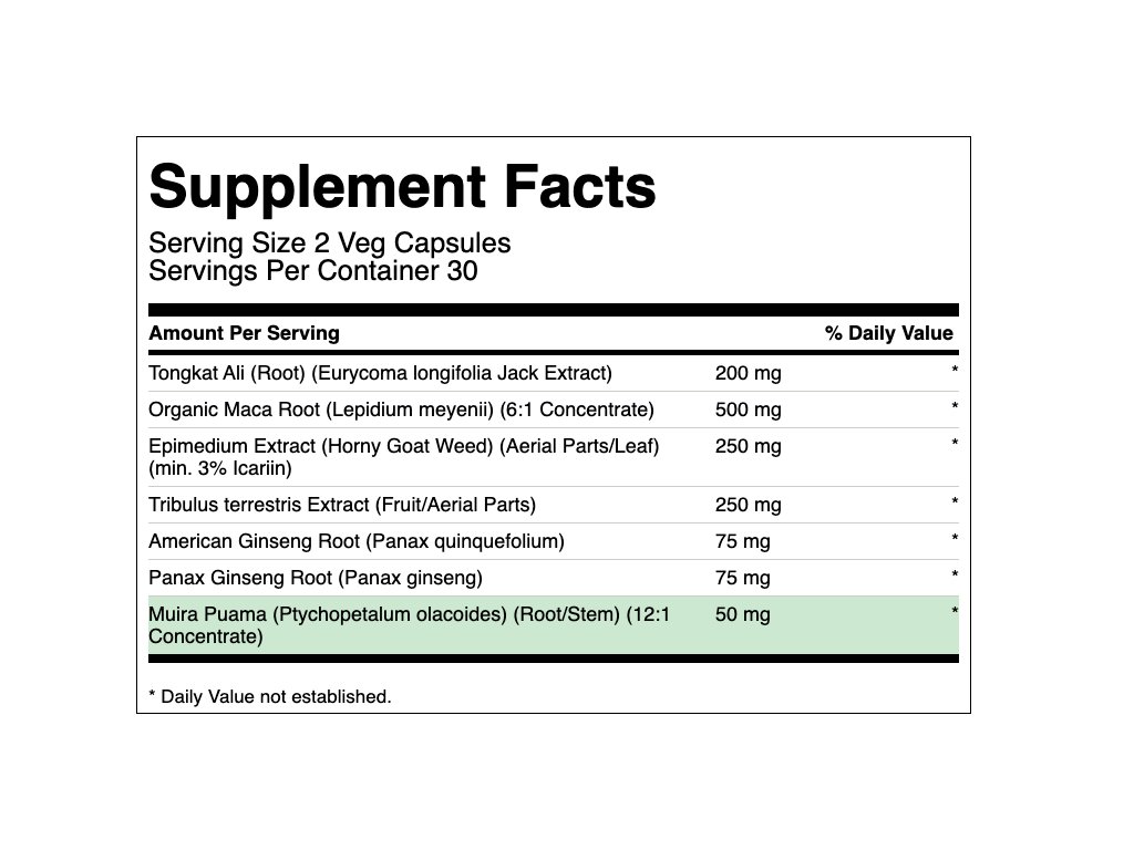 Muira Puama (Ptychopetalum olacoides) (koncentrát 12:1) | 50 mg | *** |