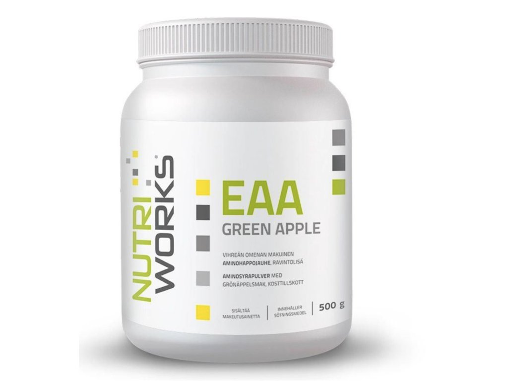 NutriWorks EAA je komplexná zmes esenciálnych aminokyselín (EAA), ktoré si telo nedokáže vytvoriť samo a musí ich prijímať v strave. Produkt obsahuje ideálny pomer všetkých deviatich EAA, vrátane BCAA v pomere 4:1:1 (L-leucín, L-izoleucín, L-valín), ktoré patria medzi najviac zastúpené aminokyseliny v svalovom tkanive.