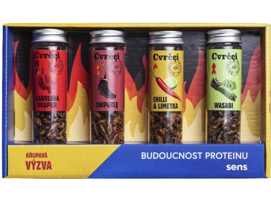 Sens Chrumkavé praženie cvrčky, darčeková sada, pálivá, 4 x 20 g