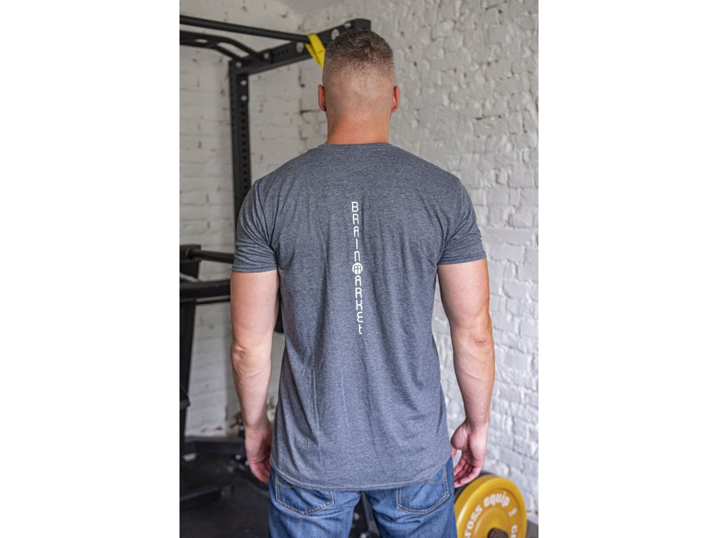 Skvelé padnúce tričko šedej farby, ideálne na bežné nosenie. Na prednej strane sa nachádza logo Brainmarketu a vzadu zvisle text BrainMarket. Tričko je príjemné a vhodné na denné nosenie. Je vyrobené z 65% polyesteru a 35% bavlny.
